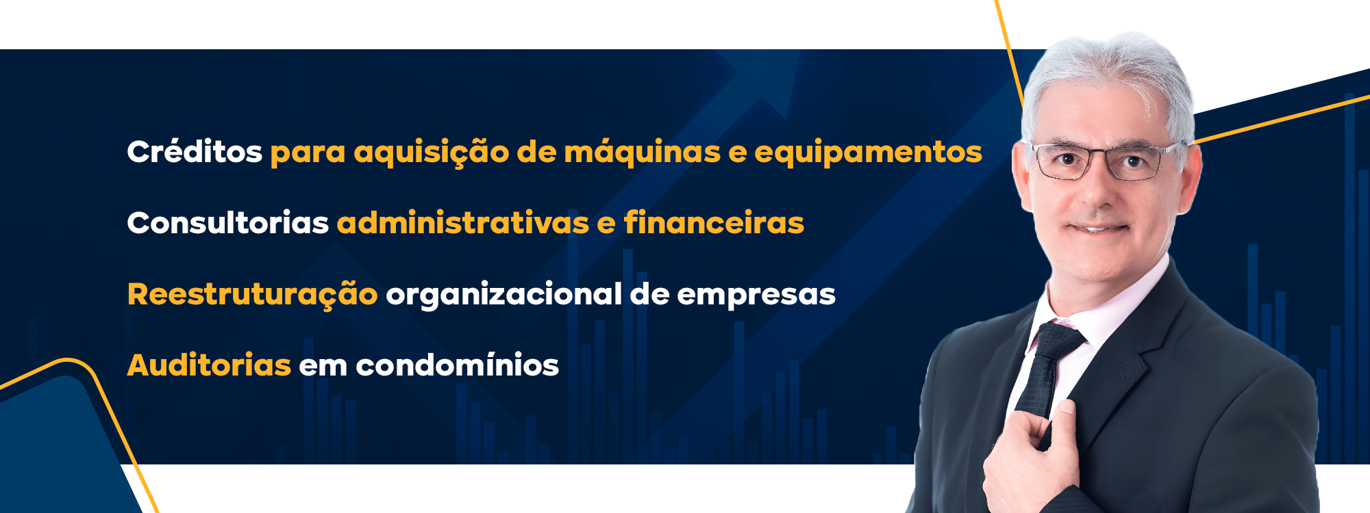 Atuo assessorando empresários e gestores na tomada de decisões, com foco em segurança, assertividade e maximização de resultados. Minha atuação contempla a organização e reestruturação financeira, a captação estratégica de recursos com condições altamente competitivas e a estruturação de projetos voltados à eficiência operacional e ao crescimento sustentável.